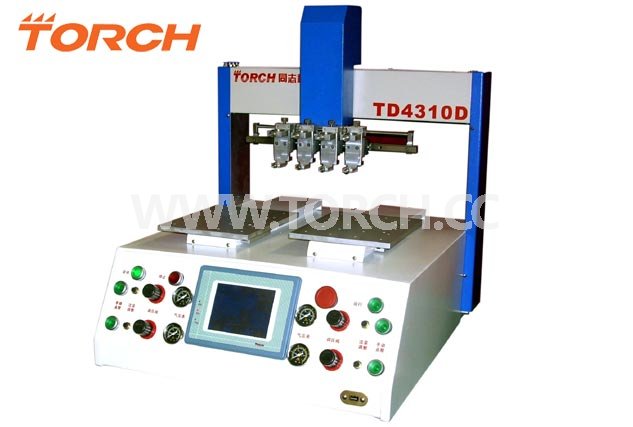 【備 注】: ●控制四軸、高速高精度、點膠與運動性能; ●外接中文觸摸屏編程器可輕而易舉的準確調校,帶來產品的高質量,提高生產效率,保證生產過程中質與量均優;該供給其體積小,使用方便,能在各種環境下長期可靠的工作,使用壽命長。 ●有效行程:X軸—400mm(左右移動) Y1軸、Y2軸—300mm(工作臺前后移動) Z軸—100mm(點膠頭上下移動) ●最高速度:X軸—800mm/s Y1軸、Y2軸—800mm/s Z軸—300mm/s ●重復精度:±0.02mm ●驅動方式:步進電機+同步帶 ●最大承重:工作臺—8千克 Z軸—3千克 ●控制方式:點到點,直線和圓弧等 ●編程方式:觸摸屏控制,PC編程輸入 ●程序容量: 100個程序/6000點 電源:AC220V ●氣壓:0~6Kgf/C㎡ ●外形尺寸:680mm(長)*650mm(寬)*740mm(高) ●整機重量:約55 Kg ●面板控制:左右啟動按鈕,復位,急停 ●編程界面:中/英文5.7英寸觸摸屏示教器